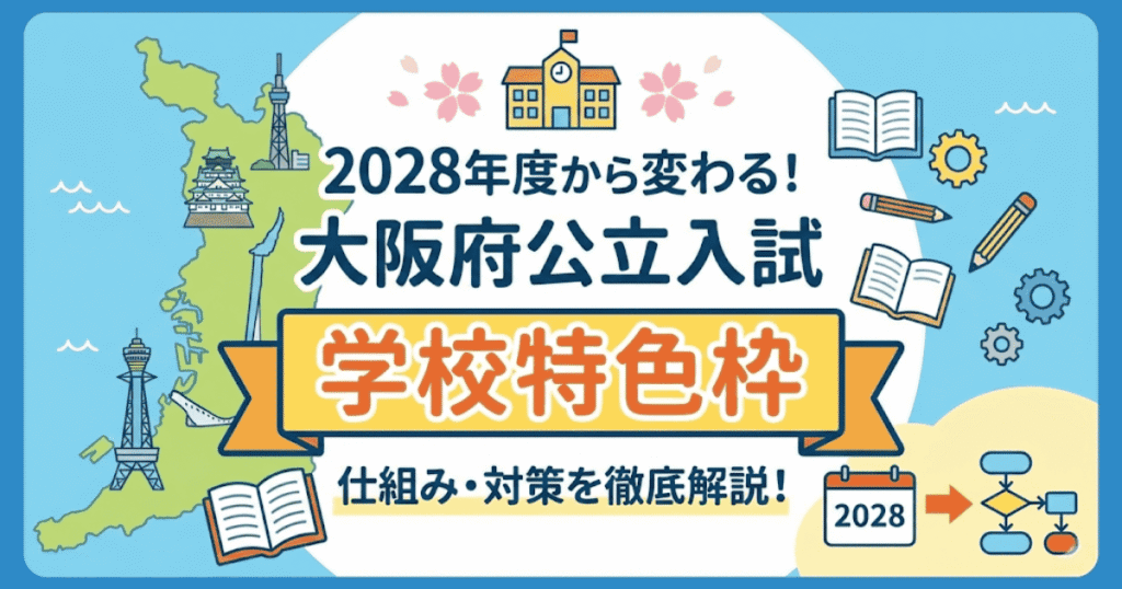 2028年度(令和10年)から、大阪府の公立高校入試制度が大きく変わることをご存じでしょうか? 中でも注目すべきは、新たに導入される「学校特色枠」です。 この制度は、現在の中学校1年生(2026年1月時点)以降のお子さんが受験するタイミングからスター...