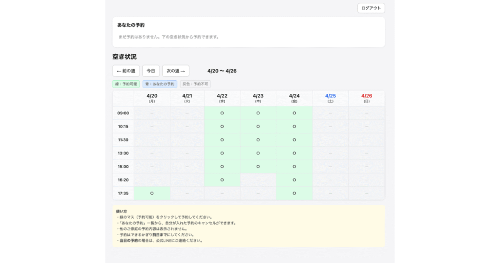 この度、こうした課題を解消し、より手軽に空き状況の確認とご予約ができる「Web予約アプリ」を新たに作成いたしました。